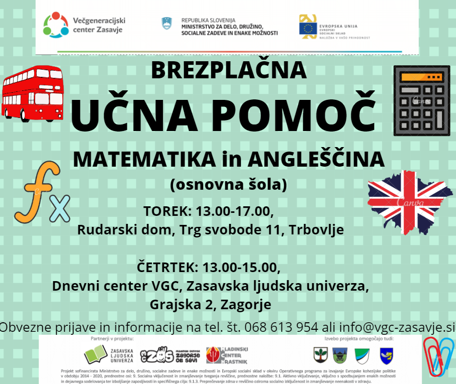 Brezplačna učna pomoč za osnovnošolce iz matematike in angleščine.