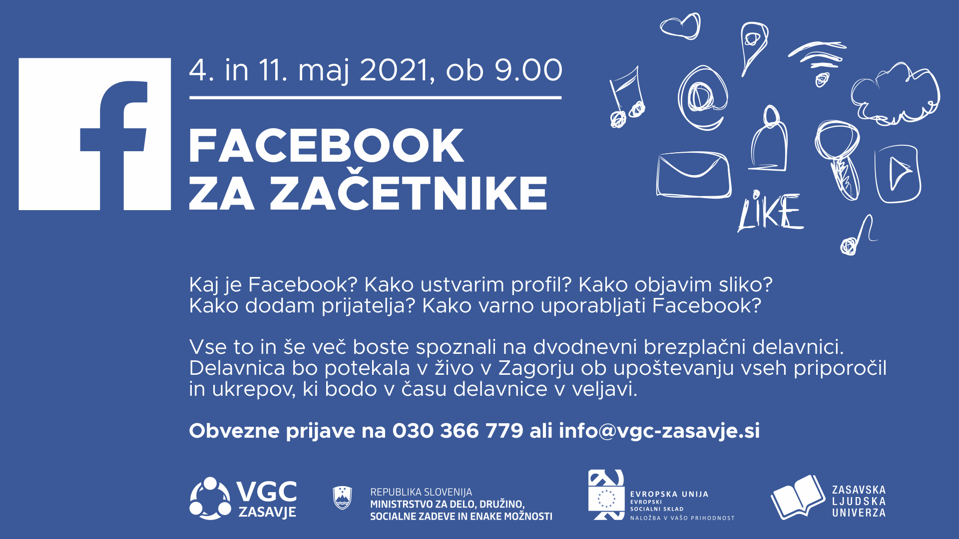 Prijav na brezplačno računalniško delavnico Facebook za začetnike ne sprejemamo več. Zagorje ob Savi, 4. 5. 2021, 9.12