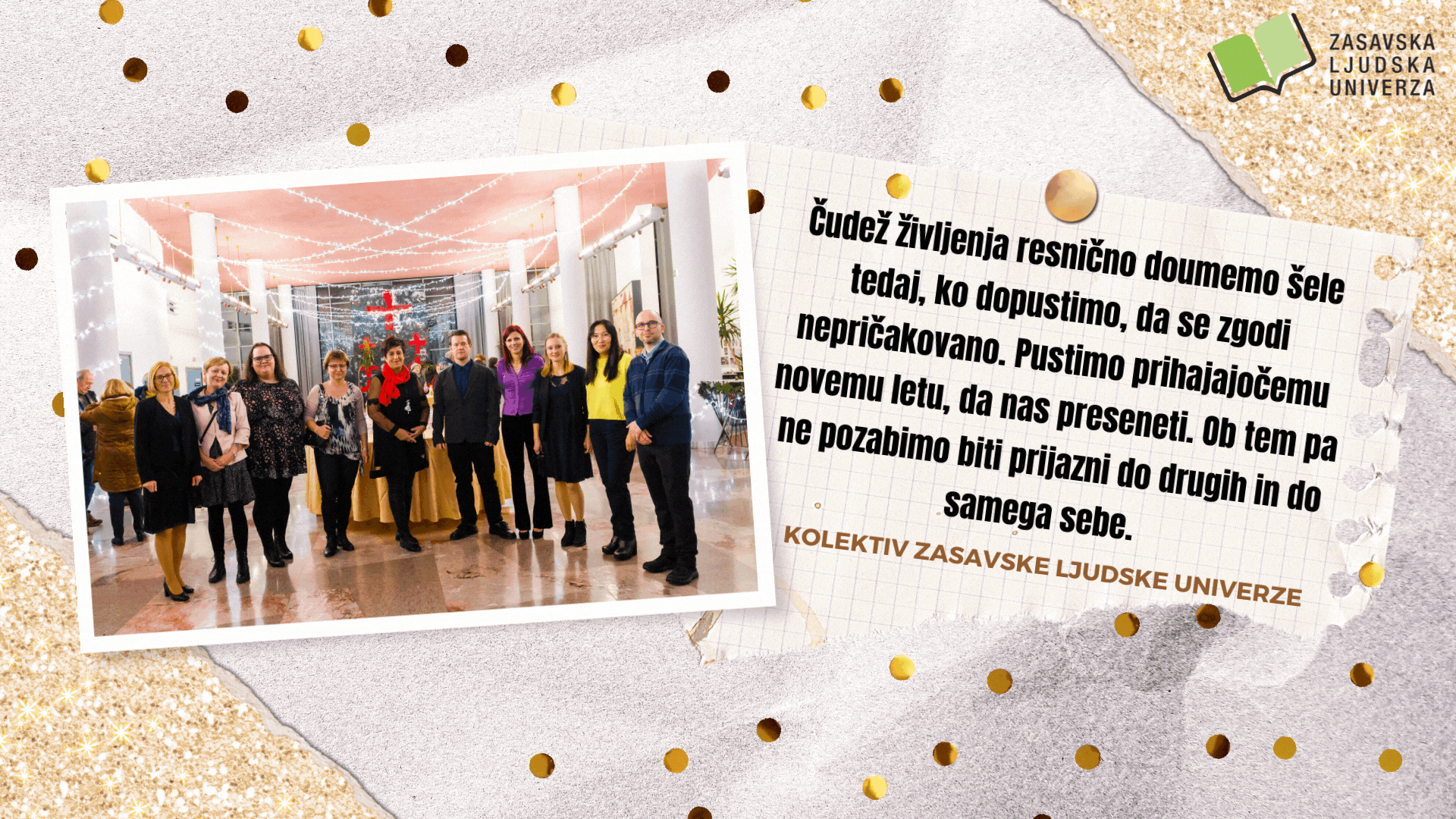 Kolektiv Zasavske ljudske univerze vam želi, da bo novo leto 2023 najboljše v vseh pogledih: srečno, ustvarjalno, igrivo, mirno, iskrivo, nagajivo, zdravo, uspešno - predvsem pa prijazno do vseh!