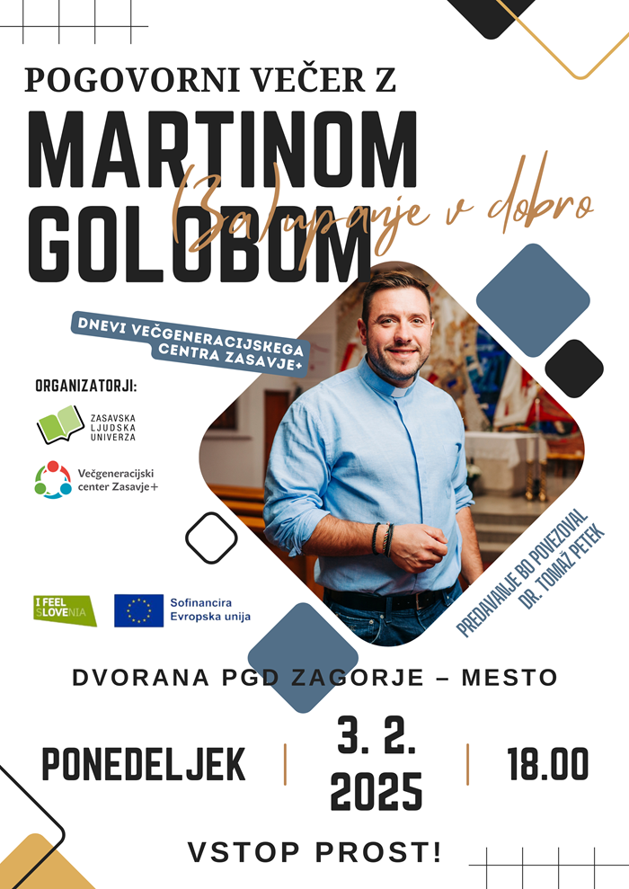 - Predavanje Martina Goloba: (Za)Upanje v dobro – Dvorana PGD Zagorje-mesto, Zagorje ob Savi (3. 2. 2025 ob 18:00)