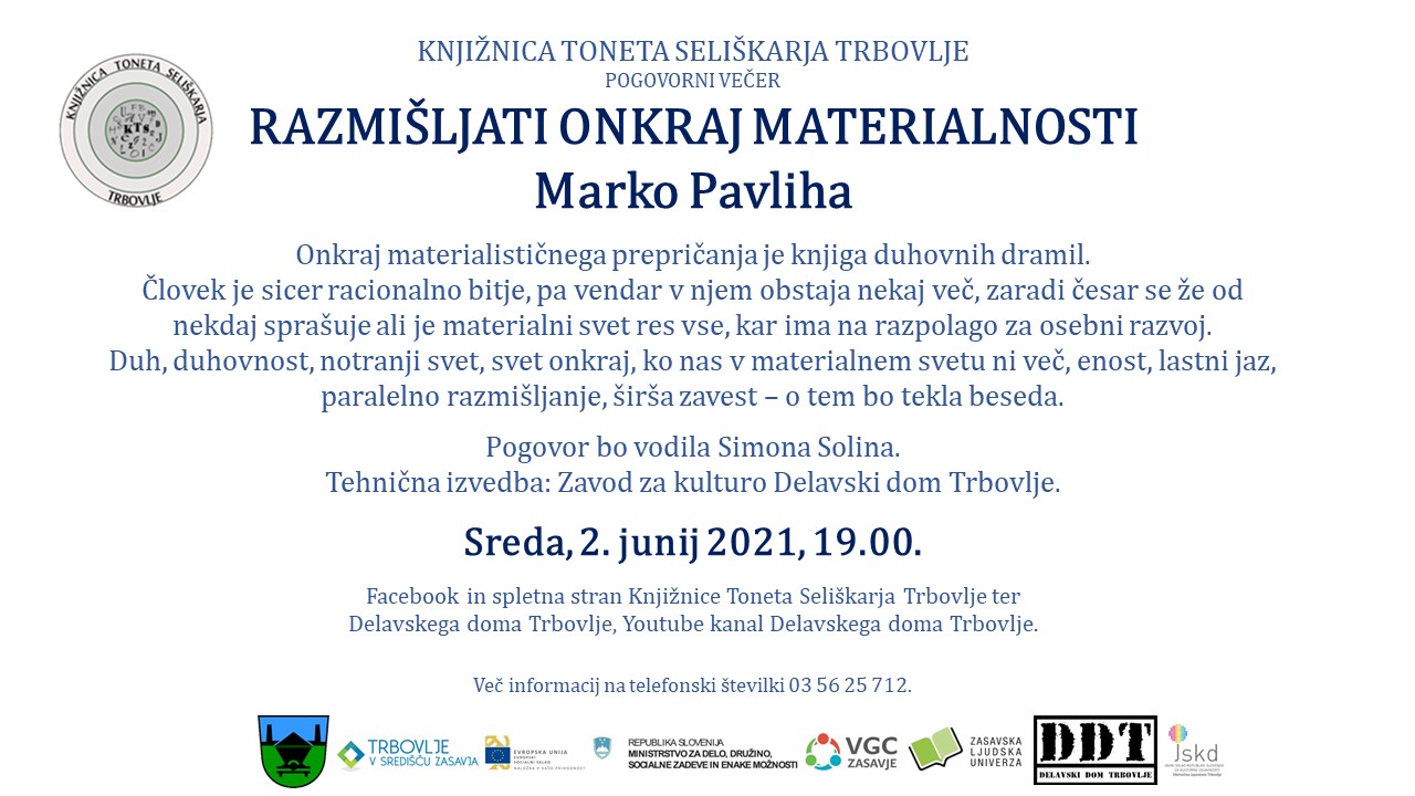 Vabimo vas na pogovorni večer Razmišljati onkraj materialnosti, gost večera bo Marko Pavliha.